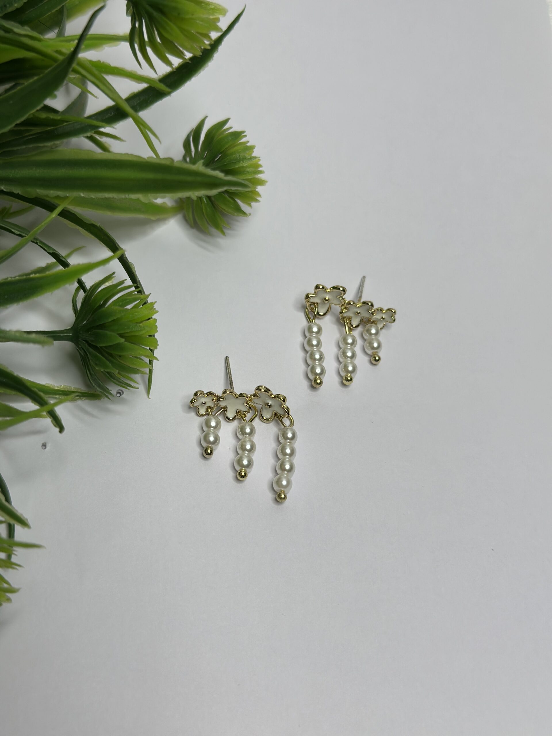 • Delicate Floral Accents: The pearls are suspended from tiny, hand-painted white flowers with golden centers, adding a whimsical and feminine touch to the design.