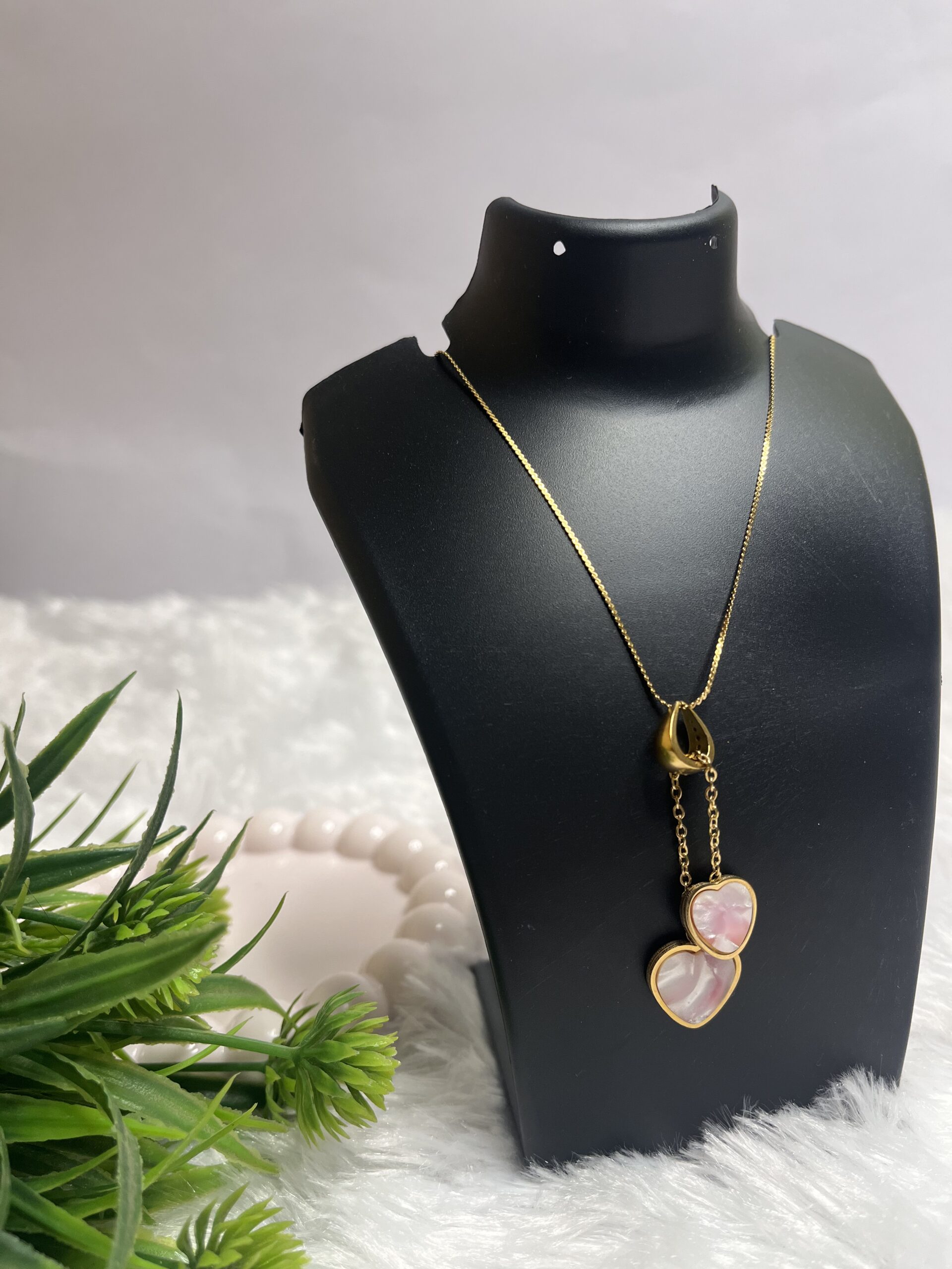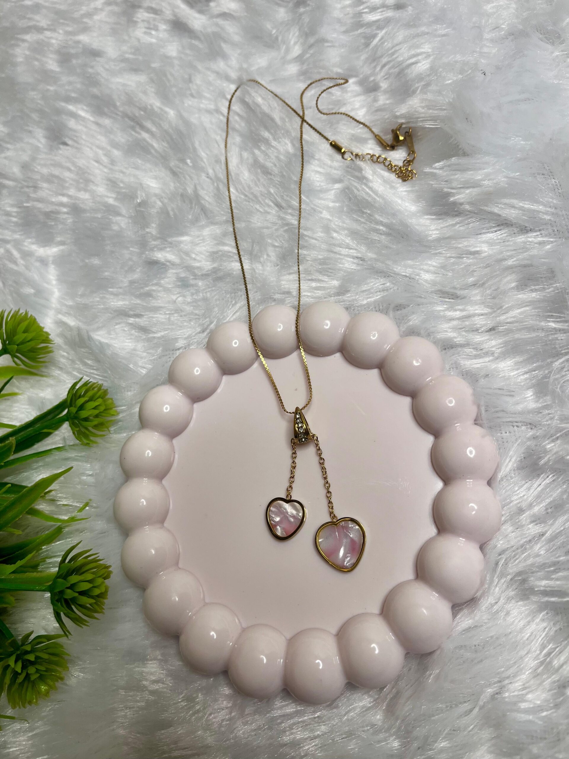 • Interactive Sliding Design: The highlight of this necklace is its adjustable movement. Both pink-toned hearts are set on a sliding mechanism, allowing you to reposition them along the chain. You can wear them close together as a united pair or spread them apart to create a completely different look based on your preference.