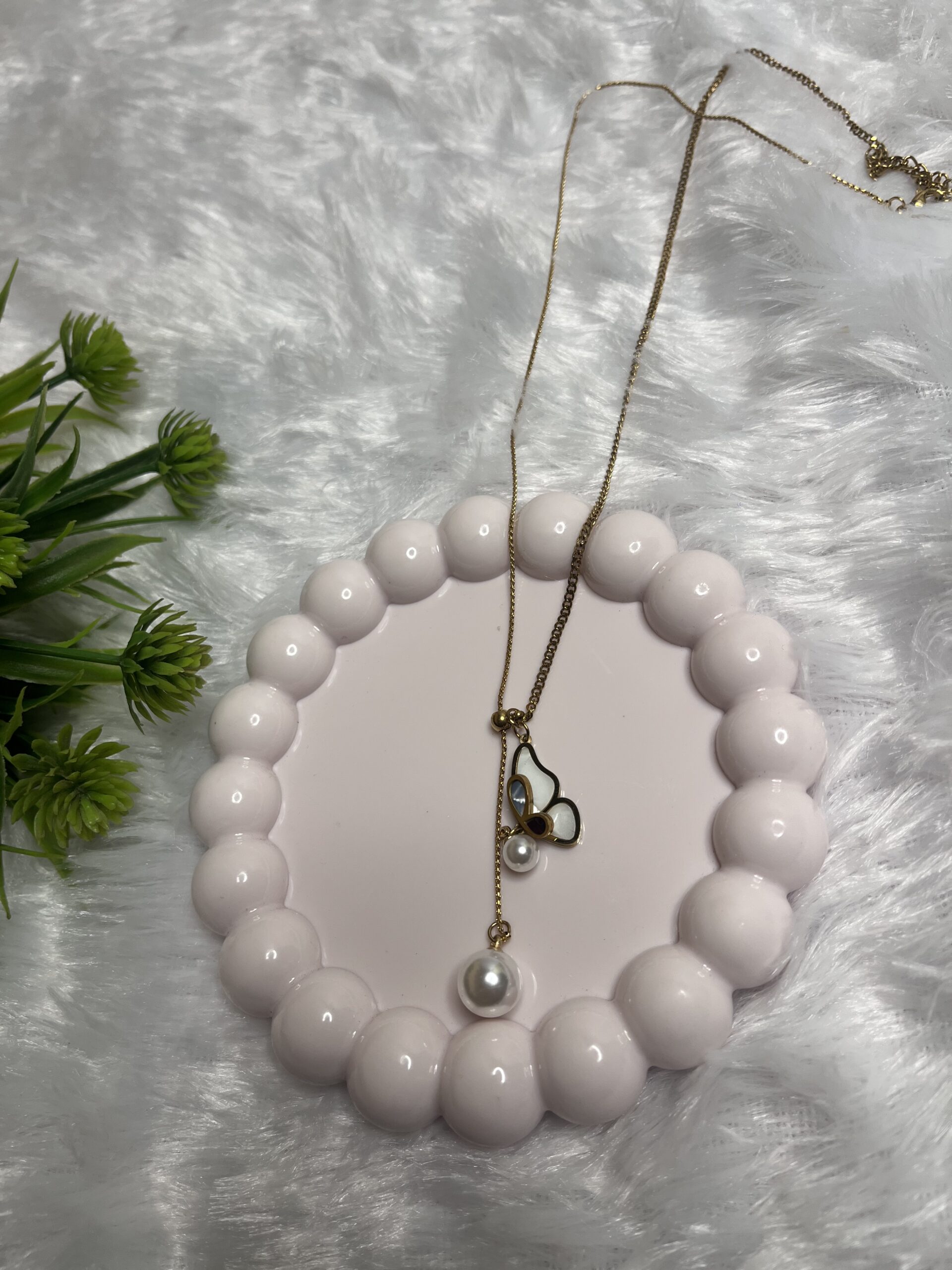 The Classic Choker Look: Slide the pearls closer to the butterfly for a more traditional pendant style that pairs perfectly with a crew-neck top or a high-collar blouse.