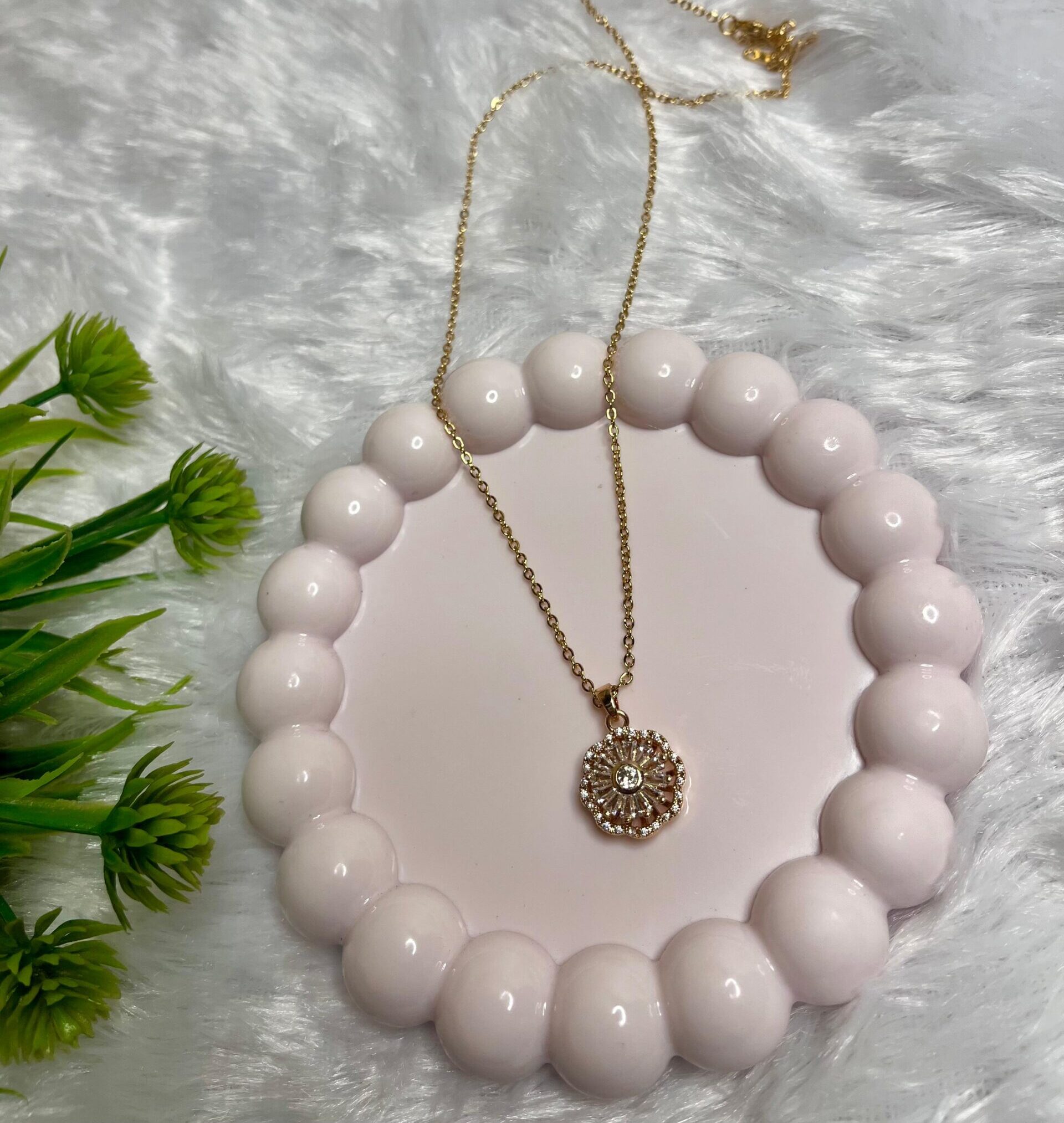 Radiant Floral Motif: The pendant features a breathtaking flower design, with a brilliant central crystal surrounded by meticulously set baguette and round micro-crystals that catch the light from every angle.