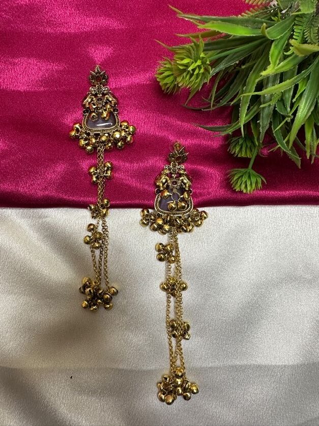 Unique Dark Metallic Colour: The highlight of these jhumka is their Deep Ebony Tintโa specialized smoky, dark metallic shade that is neither bright gold nor silver. This “matte-antique” color gives them an authentic, royal heirloom look.
