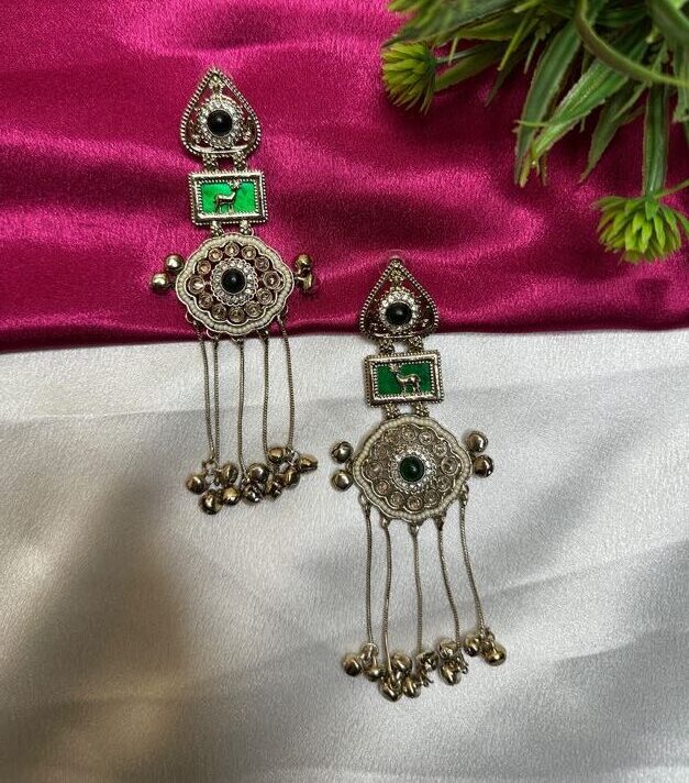 Indulge in the pinnacle of luxury with our most exclusive masterpiece. The Kashmiri Moonstone-Green Heritage Jhumka are designed for the woman who appreciates rare craftsmanship and timeless elegance.