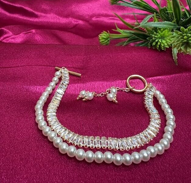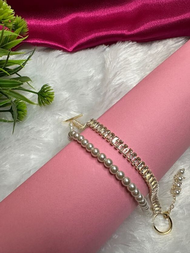 Dual-Strand Design: Features one strand of lustrous white pearls and a second strand of brilliant baguette crystals for a layered, high-end look.