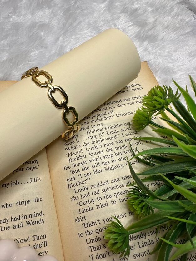 Make a statement that is as strong as it is stylish. The Flexi-Link Cuff features an oversized, interlocking chain-link design that brings a luxurious, industrial-chic vibe to your accessory game. The polished golden finish provides a mirror-like shine, ensuring this piece stands out whether worn alone or as part of a curated stack.